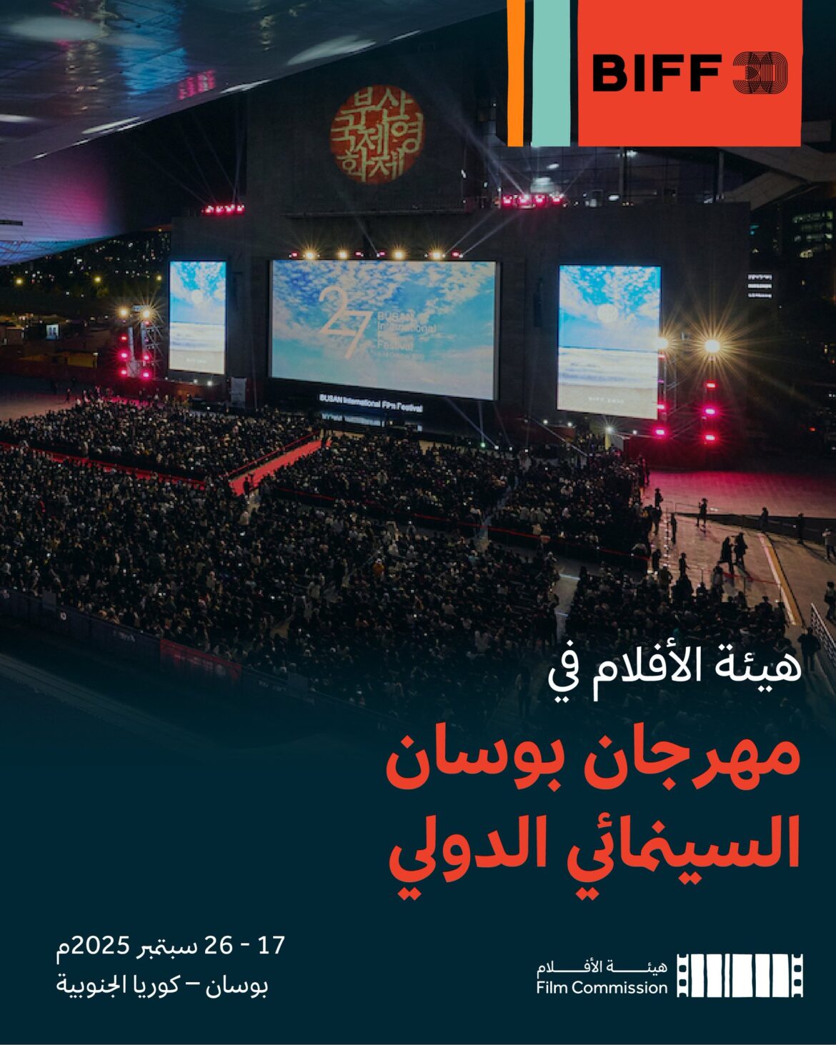تشارك هيئة الأفلام في مهرجان بوسان السينمائي الدولي 2025، الذي يُقام في مدينة بوسان، ثاني أكبر مُدن كوريا الجنوبية، خلال الفترة من 17 إلى 26 سبتمبر، ويُعد المهرجان أحد أبرز المهرجانات السينمائية في قارة آسيا، ومن أكبر أسواق السينما على مستوى العالم، بما يقدمه من أقسام متنوعة للأفلام الروائية والوثائقية، …