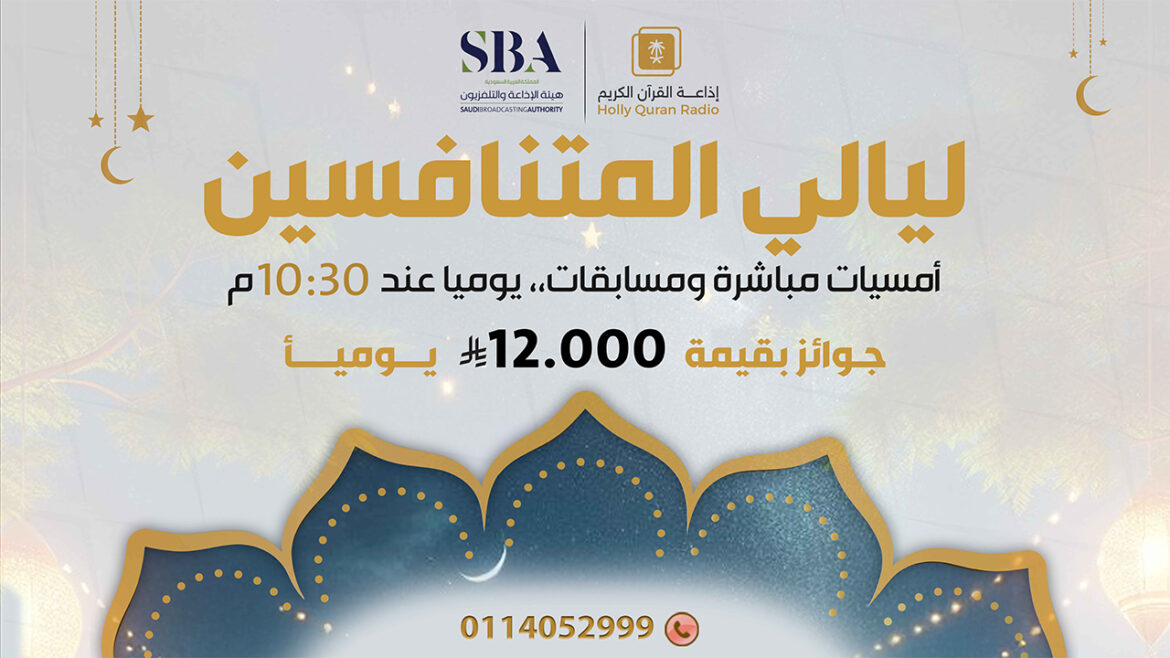 في برنامج ليالي المتنافسين وعبر أثير إذاعة القران الكريم يتجدد الشغف بالقرآن ويزداد التمعن في آياته بجهد متواصل وبقالب تفاعلي يعزز المنافسة بين أهل القران وخاصته. وهو أحد برامج المسابقات التي تبرز جماليات التلاوة والتدبر، في أجواء إيمانية مفعمة بالروحانية والتنافس الشريف.المصدر:هيئة الإذاعة والتلفزيون السعودية