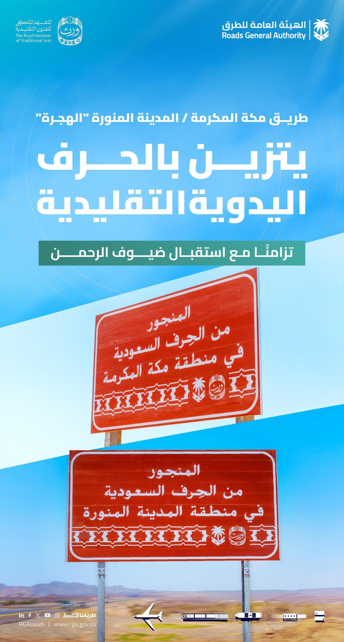 استكملت الهيئة العامة للطرق، بالتعاون مع المعهد الملكي للفنون التقليدية (وِرث)، مشروع “لوحات ورث السعودية” بين مكة المكرمة والمدينة المنورة، وتحديدًا على امتداد طريق الهجرة، من خلال إبراز الحرف اليدوية والفنون التقليدية ضمن سياق ثقافي بصري معاصر، وذلك تزامنًا مع عام الحرف اليدوية 2025م، واستعدادًا لاستقبال ضيوف الرحمن في موسم …