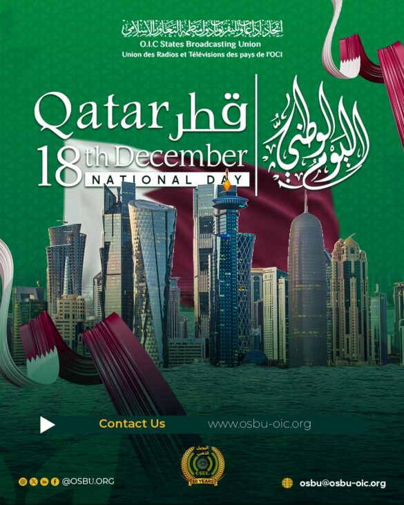 يتقدم اتحاد إذاعات وتلفزيونات دول منظمة التعاون الإسلامي (OSBU) بأسمى آيات التهنئة وأصدق مشاعر المحبة والتقدير إلى دولة قطر الشقيقة، قيادةً وحكومةً وشعبًا، بمناسبة اليوم الوطني لدولة قطر، الذي يوافق…