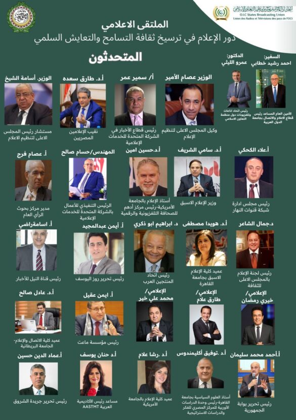 فعّل اتحاد إذاعات وتلفزيونات دول منظمة العالم الإسلامي اتفاقية التعاون مع قطاع الإعلام والاتصال بجامعة الدول العربية، من خلال تنظيم الملتقى الإعلامي الأول بعنوان:“دور الإعلام في ترسيخ ثقافة التسامح والتعايش…