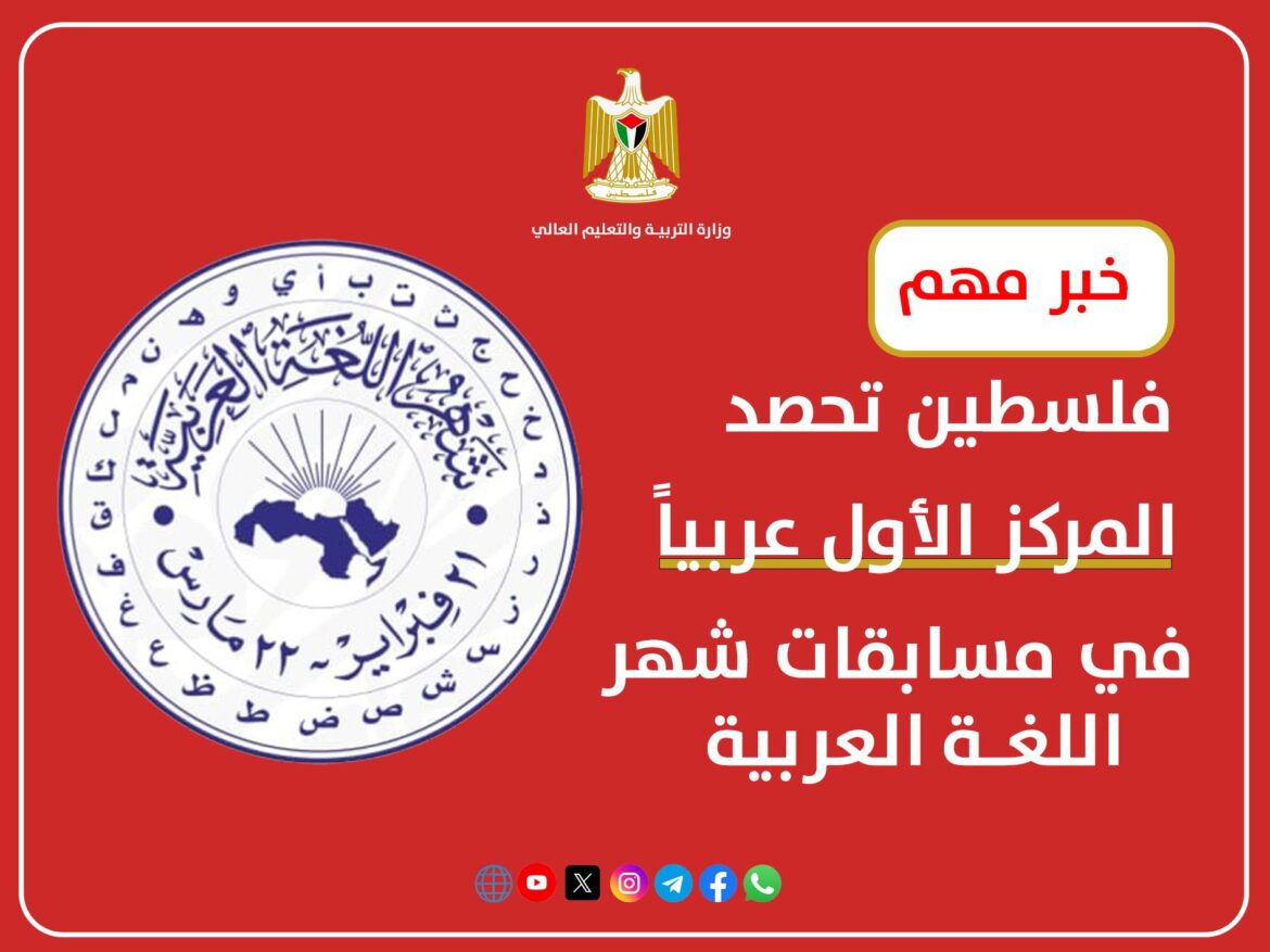 رام الله– أعلنت وزارة التربية والتعليم العالي الفلسطينية عن تحقيق دولة فلسطين المركز الأول على مستوى الدول العربية في مسابقات شهر اللغة العربية للدورة الأولى للعام 2025-2026، ضمن “مبادرة شهر اللغة العربية” تحت مظلة جامعة الدول العربية، بمشاركة واسعة من مختلف الدول العربية. وأوضحت الوزارة أن المسابقات شهدت مشاركة متميزة …