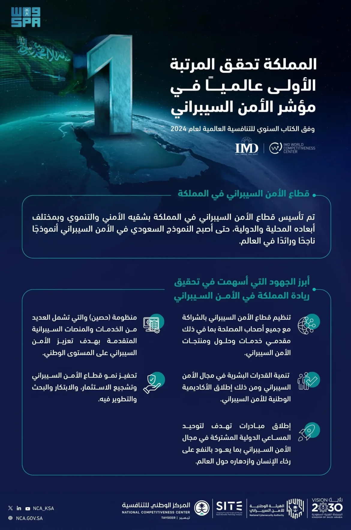 المملكة تتفوق رقمياً وتحقق المرتبة الثانية عالمياً في أبرز المؤشرات التقنية في تقرير التنافسية العالمية IMD