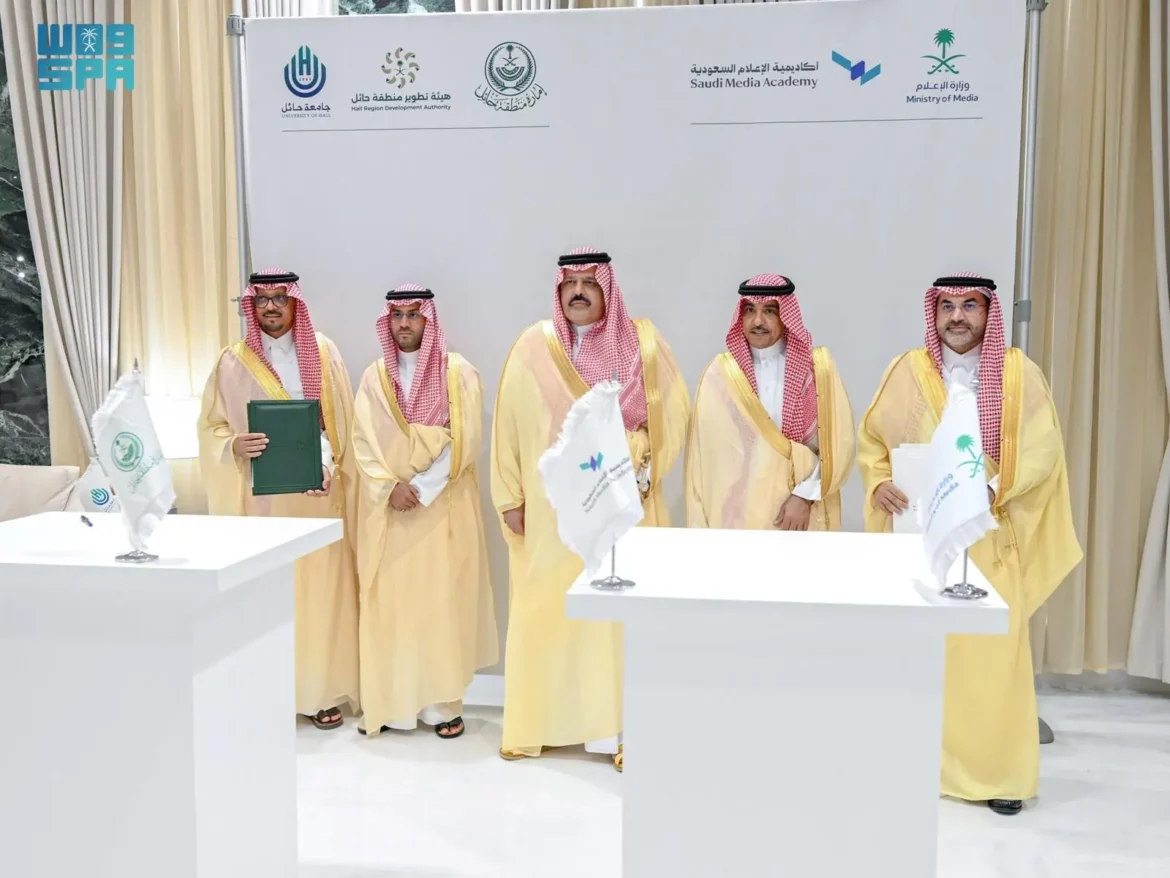 أمير حائل يشهد توقيع اتفاقيات تعاون بين أكاديمية الإعلام السعودية وإمارة المنطقة وجامعة حائل وهيئة التطوير