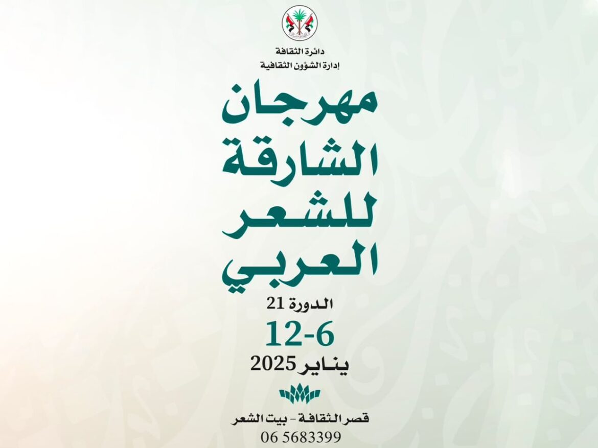تحت رعاية صاحب السمو الشيخ الدكتور سلطان بن محمد القاسمي عضو المجلس الأعلى حاكم الشارقة، تنطلق فعاليات الدورة الحادية والعشرين من مهرجان الشارقة للشعر العربي، خلال الفترة من 6 حتى 12 يناير الجاري في قصر الثقافة، بمشاركة أكثر من 70 شاعراً وشاعرة وناقداً وإعلامياً يمثلون الدول العربية وعدد من الدول …
