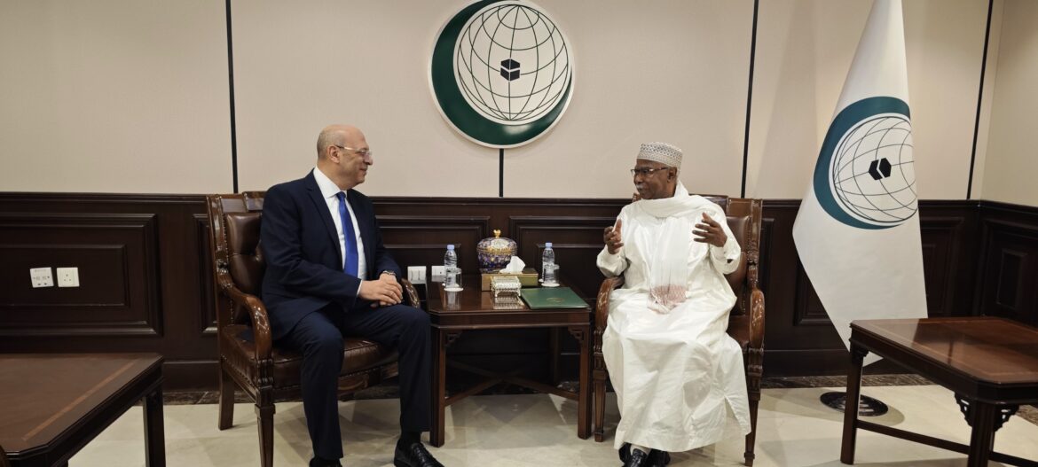 استقبل الأمين العام لمنظمة التعاون الإسلامي، معالي السيد حسين إبراهيم طه\بمقر الأمانة العامة، سعادة السفير / شادي الشرقاوي، بمناسبة إنتهاء مهامه كمندوب دائم لجمهورية مصر العربية لدى منظمة التعاون الاسلامي.وثمن معالي الأمين العام دور وجهود المندوب الدائم واسهاماته في أنشطة المنظمة أثناء توليه مهامه. المصدر: منظمة التعاون الإسلامي
