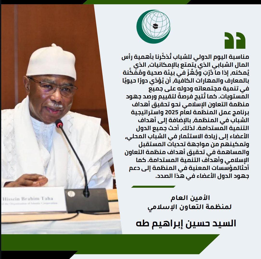 في يوم الشباب الدولي: الأمين العام لمنظمة التعاون الإسلامي يُسلّط الضوء على الدور الحيوي للعمل الشبابي المحلي في تحقيق أهداف التنمية المستدامة وما بعدها