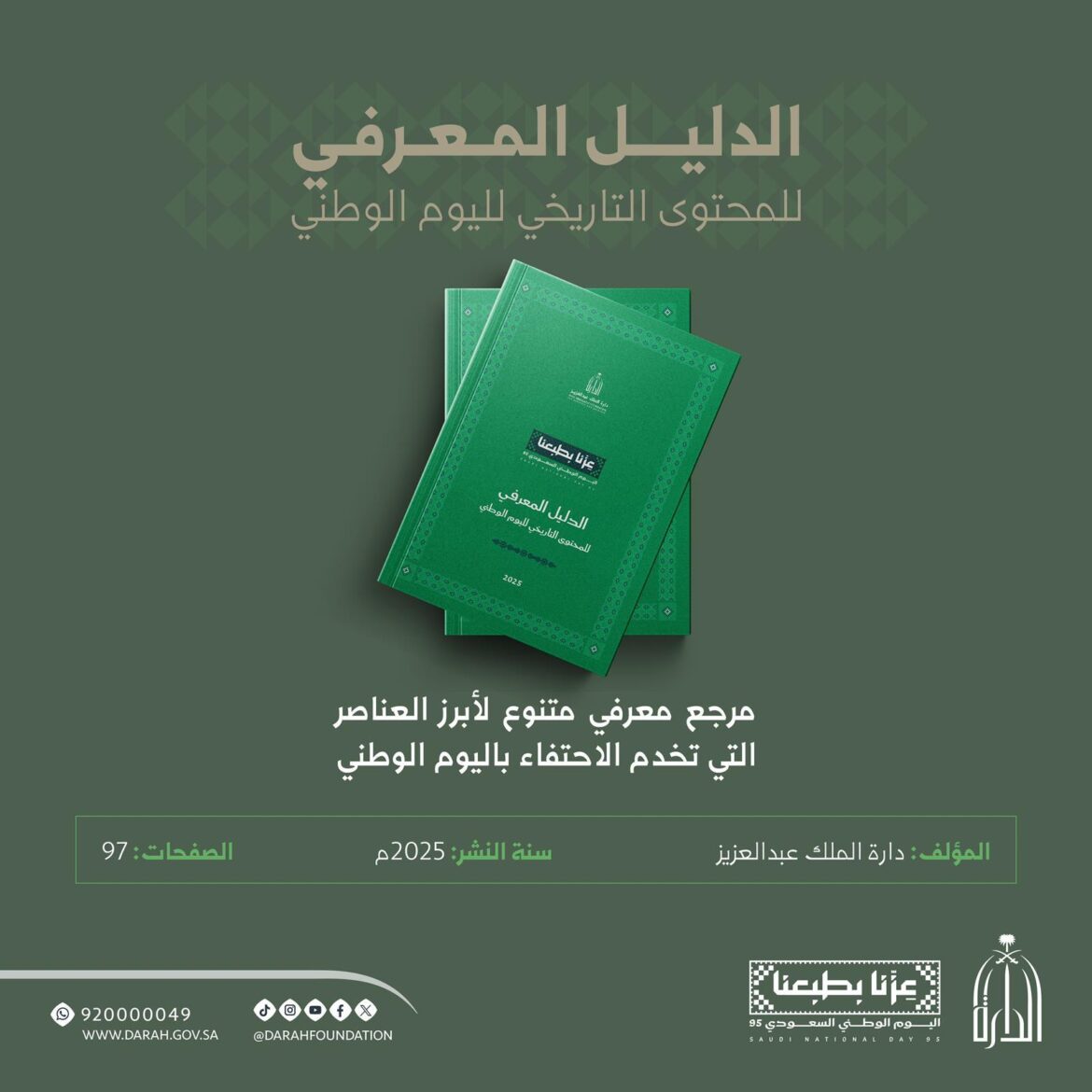 دارة الملك عبدالعزيز تصدر الدليل المعرفي للمحتوى التاريخي لليوم الوطني السعودي الـ 95