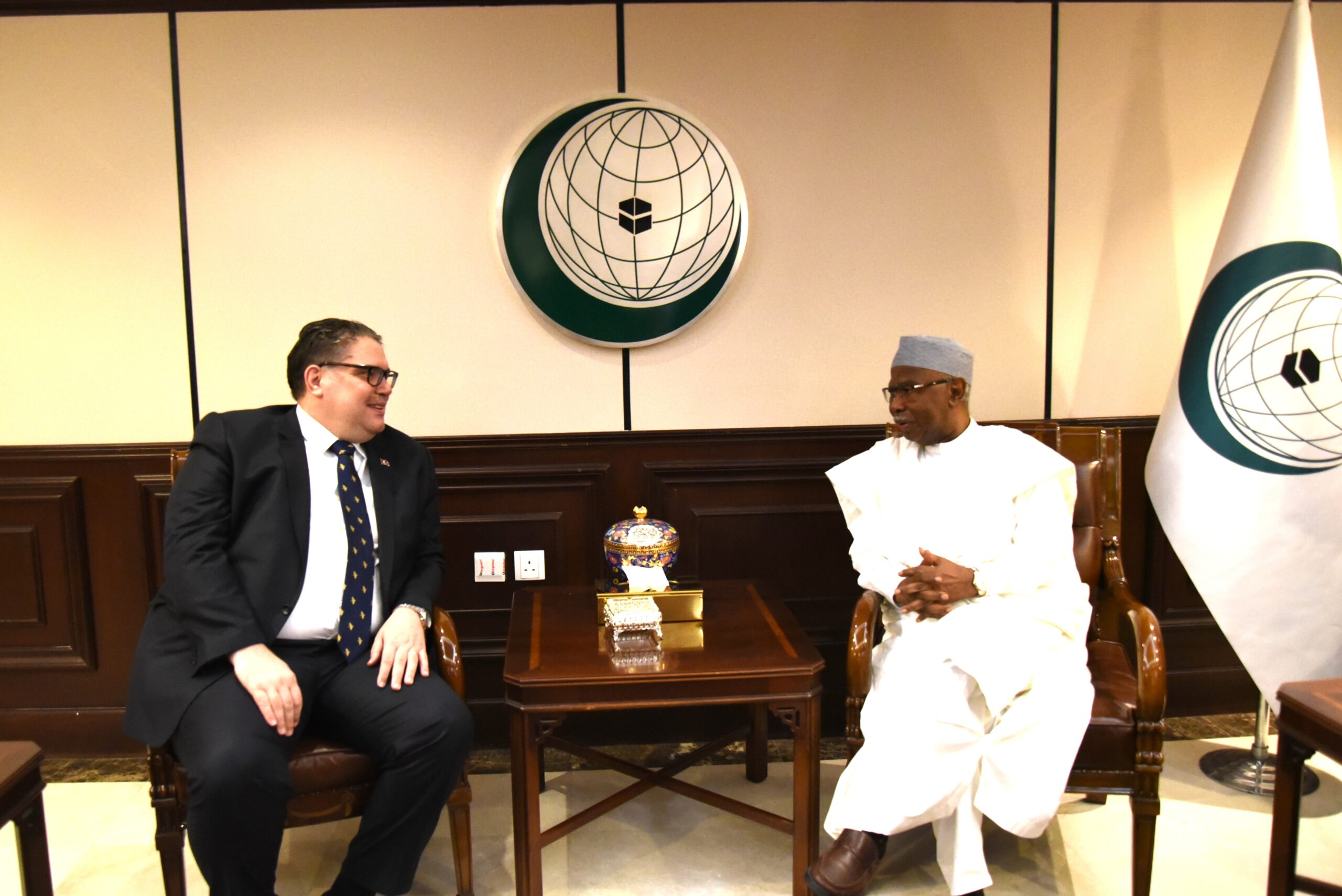 استقبل معالي الأمين العام لمنظمة التعاون الإسلامي، السيد حسين إبراهيم طه، في ديوانه بالأمانة العامة، الممثل الدائم للجمهورية التركية لدى المنظمة، سعادة السفير جانك أوراز.