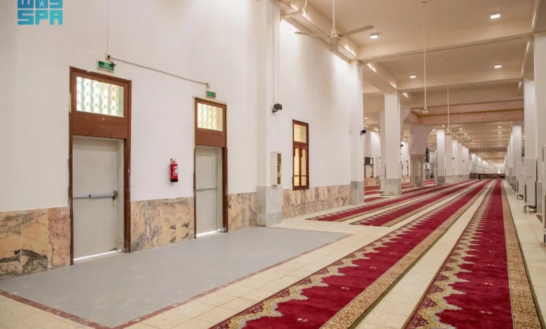واستُكملت أعمال التطوير بتركيب نظام صوتيات متقدم وكاميرات مراقبة أمنية، ضمن منظومة متكاملة لتعزيز الأمن والسلامة داخل المسجد، إضافة إلى تنظيم البوابات والمداخل لضمان انسيابية الحركة، ويبلغ إجمالي عدد الأبواب (72) بابًا، وتولت تنفيذ هذه المهام فرق إشرافية وخدمية تباشر أعمالها لتقديم أرقى الخدمات لضيوف الرحمن.