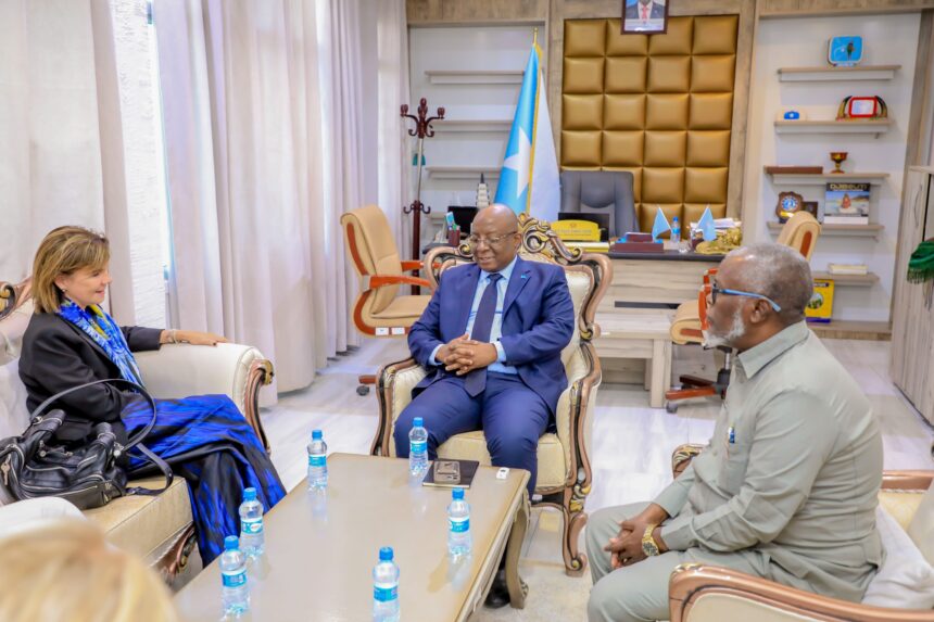 استقبل معالي وزير الإعلام والثقافة والسياحة، السيد داود أويس جامع في مكتبه، سفيرة الاتحاد الأوروبي لدى الصومال، كارين جوهانسون، لمناقشة سبل تعزيز التعاون في مجالات الثقافة والتوعية العامة.