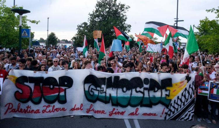 في مشهد استثنائي يعكس تلاقي الفن مع الموقف السياسي، تحوّلت السجادة الحمراء في “مهرجان البندقية السينمائي” إلى منصة احتجاج ضد الحرب على غزة، بعدما نظّم ناشطون مؤيدون لفلسطين مسيرة احتجاجية خلال فعاليات المهرجان، داعين إلى وقف الإبادة الجماعية بحق الفلسطينيين.