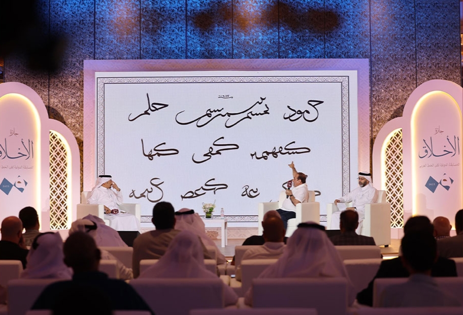 وقد شهد اليوم ثالث ندوات البرنامج الثقافي المصاحب للمسابقة الدولية لفن الخط العربي جائزة الأخلاق، تحت عنوان “زخارف الخط وتشكيل المعنى”، والتي حاضر فيها كل من الخطاط والفنان عبد الله فخرو، عضو الجمعية القطرية للفنون التشكيلية ومؤسس بيت الخطاطين، والخطاط العراقي حميد السعدي، أحد أمهر خطاطي الحروف العربية.