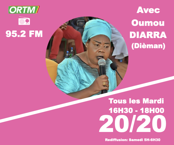 تقدّم الإذاعة الوطنية في مالي ORTM عبر موجتها 95.2 FM برنامجًا مميزًا بعنوان “20/20″، من إعداد وتقديم الإعلامية أومو ديارا (دييمان)، وذلك كل يوم ثلاثاء من الساعة الرابعة والنصف مساءً حتى السادسة مساءً.