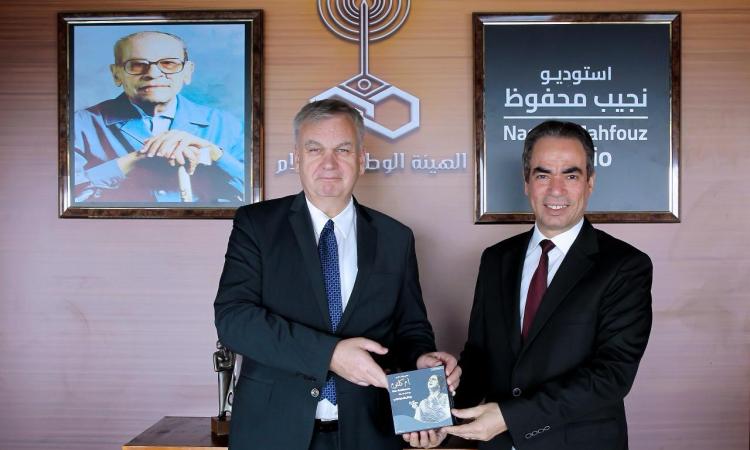 كما أهدى الكاتب أحمد المسلماني رئيس الهيئة الوطنية للإعلام، السفير نسخة من أغاني كوكب الشرق أم كلثوم من إنتاج شركة “صوت القاهرة”، مشيدًا بتميز العلاقات الثقافية والإعلامية بين القاهرة وبرلين.