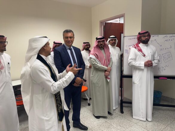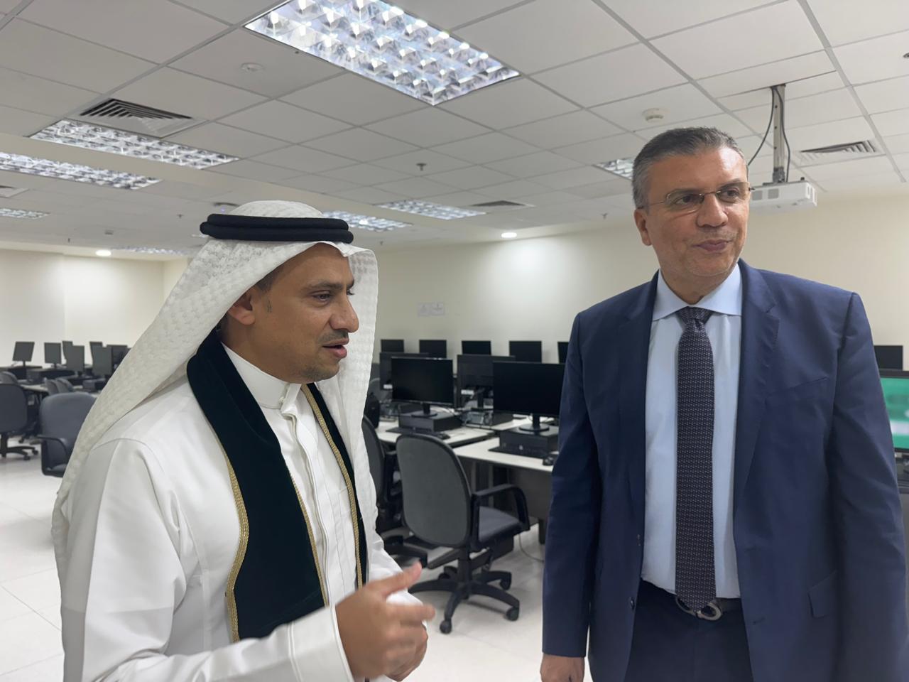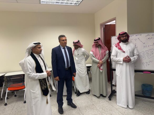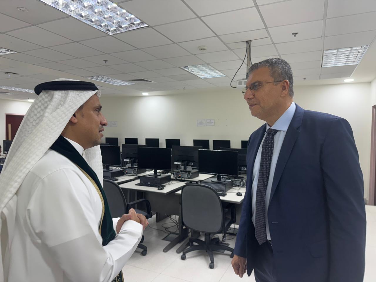 ورافق رئيس الاتحاد في جولته عميد كلية الاتصال والإعلام الدكتور أيمن باجنيد، الذي قدم شرحاً وافياً عن برامج الكلية الأكاديمية والتدريبية، ودورها في تخريج جيل من الإعلاميين المؤهلين تقنياً ومهنياً لمواكبة متغيرات الإعلام الحديث.