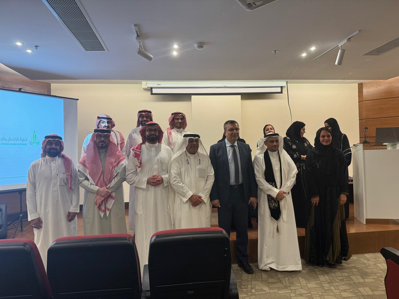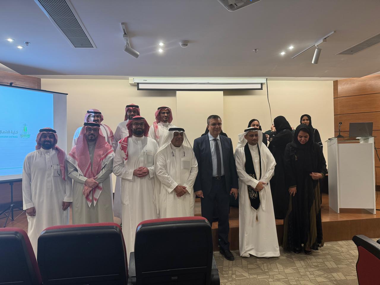 وجاء التكريم في إطار زيارة سعادة رئيس الاتحاد إلى الجامعة، حيث قام بجولة ميدانية شملت أحدث الاستديوهات والمرافق الإعلامية المتطورة التي تسخرها الجامعة في مجال التدريب العملي وإعداد الكوادر الإعلامية السعودية.