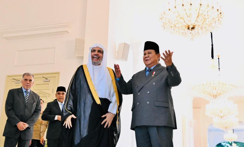 جاكرتا –استقبل فخامة رئيس جمهورية إندونيسيا السيد برابوو سوبيانتو، في القصر الجمهوري بالعاصمة جاكرتا، معالي الأمين العام لرابطة العالم الإسلامي، رئيس هيئة علماء المسلمين، فضيلة الشيخ الدكتور محمد بن عبدالكريم العيسى.
