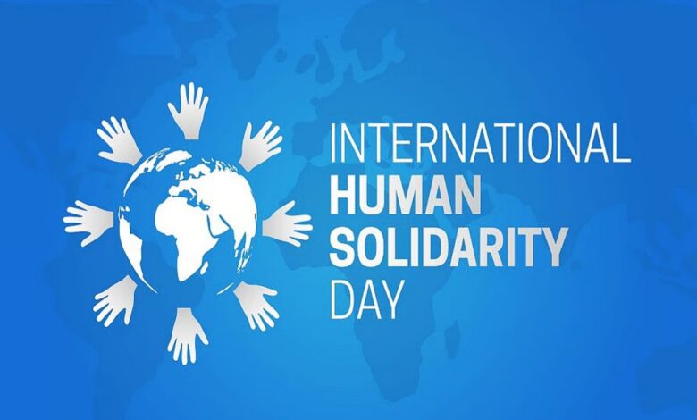 اليوم العالمي للتضامن الإنساني يحتفى به عالمياً في ديسمبر من كل عام، ويعكس قيمة إنسانية وأخلاقية مشتركة تسهم في تعزيز التنمية المستدامة ومواجهة الفقر وترسيخ العدالة الاجتماعية والتعايش بين الشعوب.