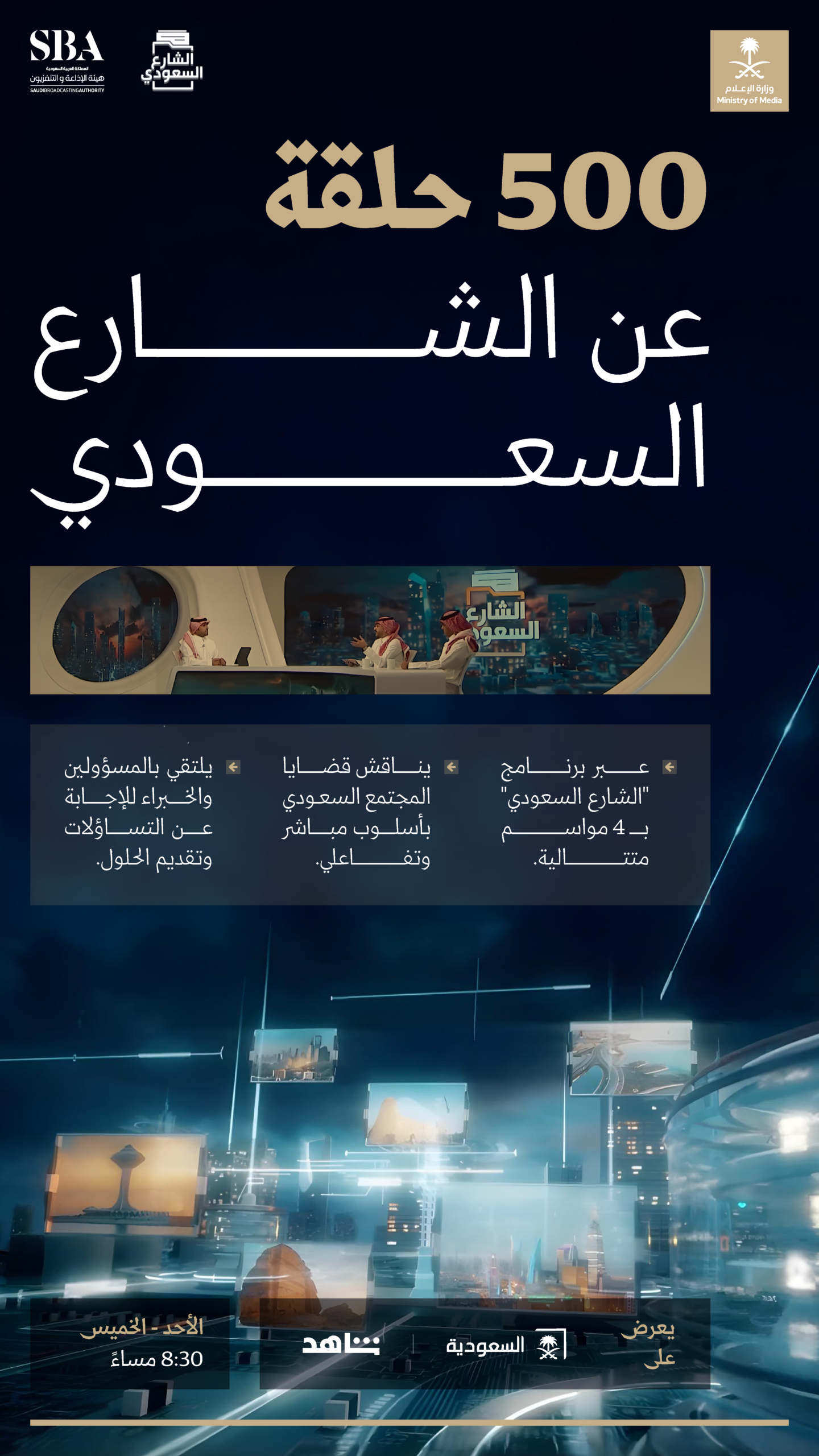 اختتم برنامج “الشارع السعودي”، الذي يُبث على القناة السعودية الأولى، 500 حلقة على مدى أربع مواسم متتالية، ليكون منصة حيوية لمناقشة قضايا المجتمع السعودي بأسلوب مباشر وتفاعلي.