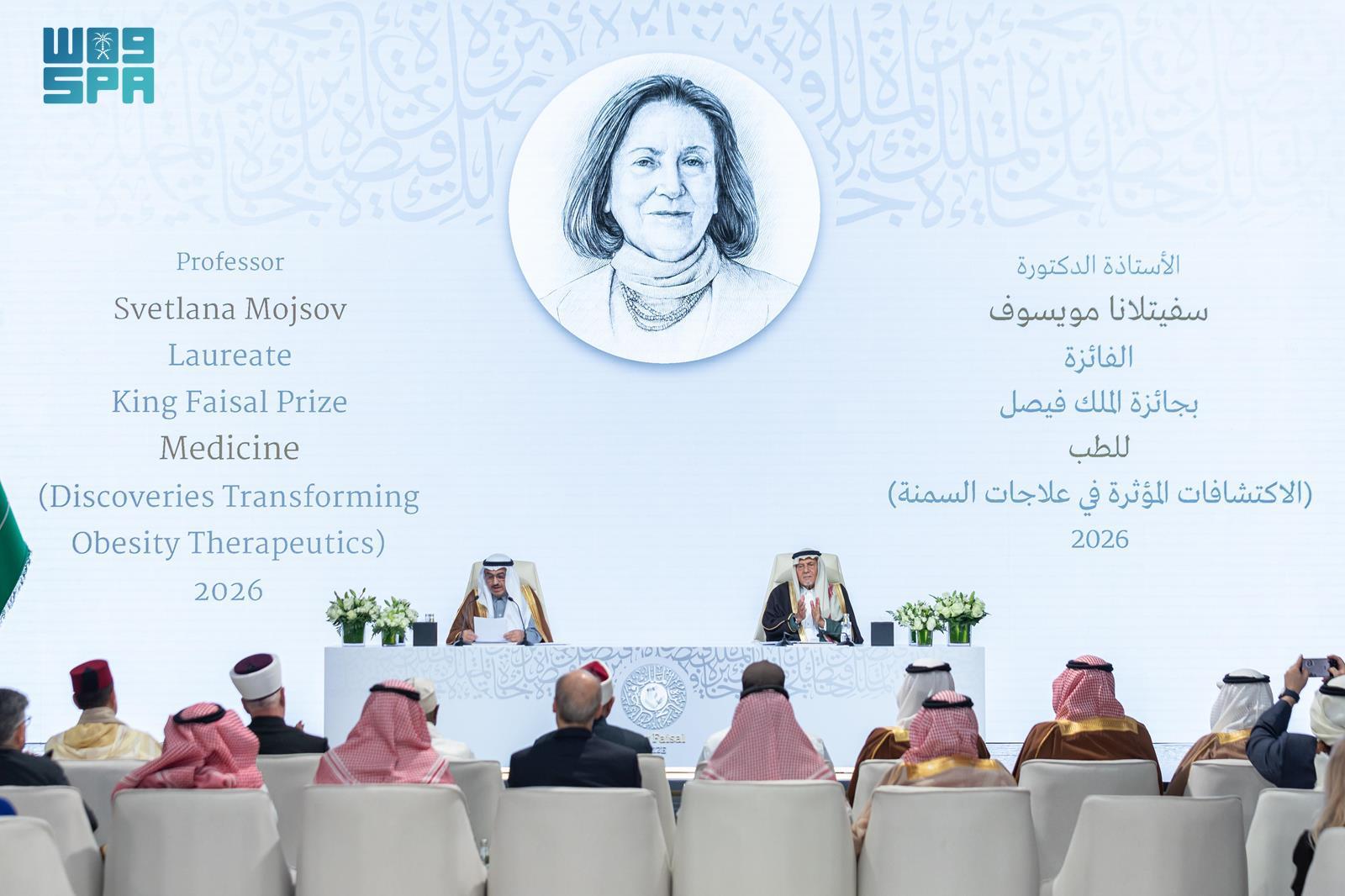 وفي فرع الطب، وموضوعه «الاكتشافات المؤثرة في علاجات السمنة»، فازت بالجائزة البروفيسورة سفيتلانا مويسوف، أستاذة جامعة روكفلر بالولايات المتحدة الأمريكية، نظير إسهاماتها الرائدة في اكتشاف ببتيد شبيه الغلوكاغون (GLP-1)، وما أسهم به عملها العلمي في تطوير علاجات حديثة لمرض السكري والسمنة.