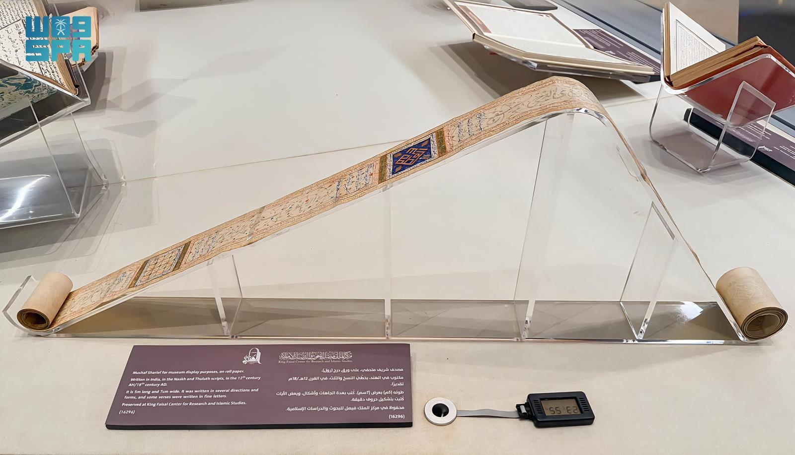 يعرض متحف القرآن الكريم بحي حراء الثقافي في مكة المكرمة مصحفًا شريفًا نادرًا يُعد من النفائس القرآنية المتحفية، ويجسد عناية المسلمين بكتاب الله عبر العصور. والمصحف معروض على ورق الدرج (الرول)، وقد أُنجز في الهند خلال القرن الثاني عشر الهجري، الموافق للقرن الثامن عشر الميلادي تقريبًا.