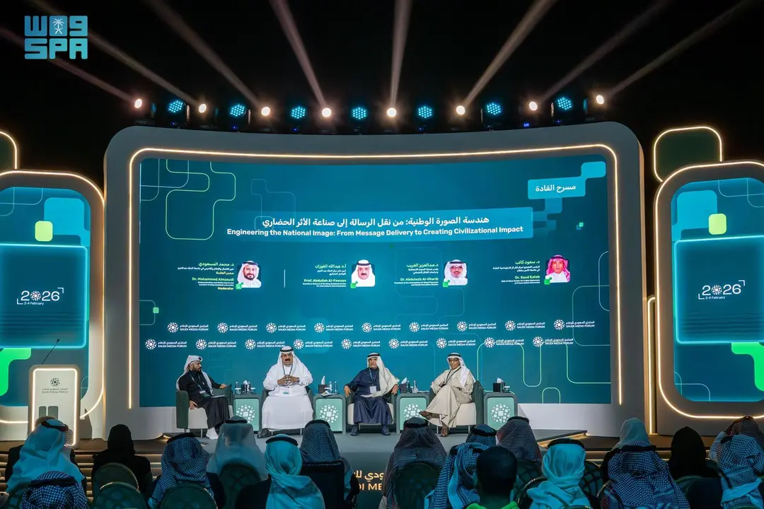 ناقشت جلسة حوارية بعنوان «هندسة الصورة الوطنية: من نقل الرسالة إلى صناعة الأثر الحضاري»، ضمن أعمال المنتدى السعودي للإعلام في نسخته الخامسة، دور الإعلام الوطني في عرض التحولات المجتمعية بصورة واقعية، وتعزيز القيم الوطنية، وبناء الصورة الحضارية للمملكة أمام الداخل والخارج.
