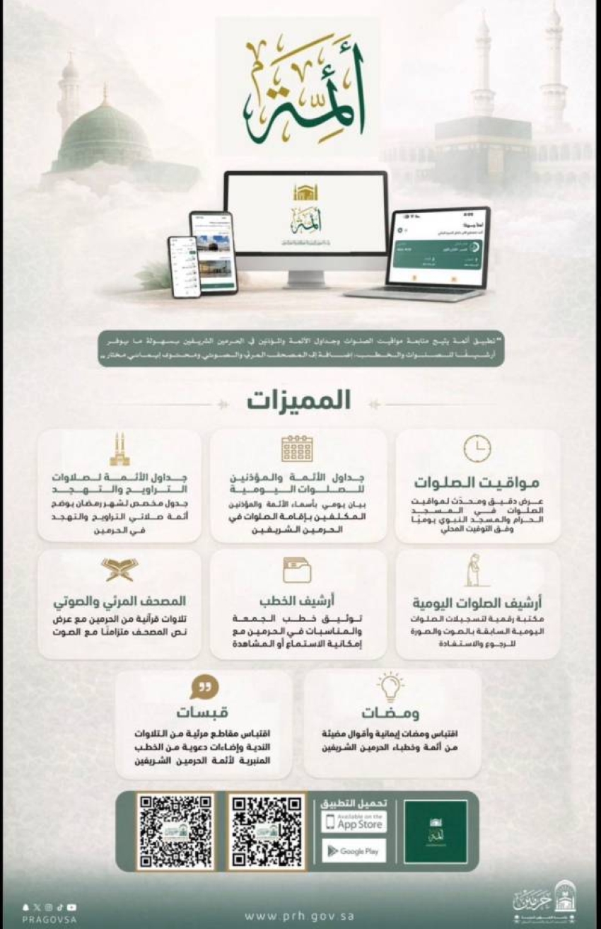 ويأتي إطلاق هذا التطبيق ضمن مساعي رئاسة الشؤون الدينية لمواكبة التحول الرقمي وتقديم خدمات نوعية تواكب تطلعات الزوار والمعتمرين، وتتيح الوصول إلى المحتوى الديني في أي وقت ومكان.