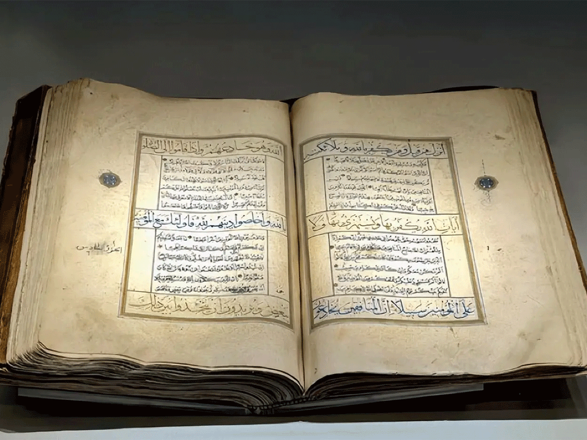 عرض متحف القرآن الكريم في مكة المكرمة مصحفًا شريفًا مزخرفًا يعود إلى القرن الثالث عشر الهجري (التاسع عشر الميلادي)، يُعد من أبرز المقتنيات النادرة التي تعكس ثراء التراث الإسلامي وفنون الكتابة والزخرفة.