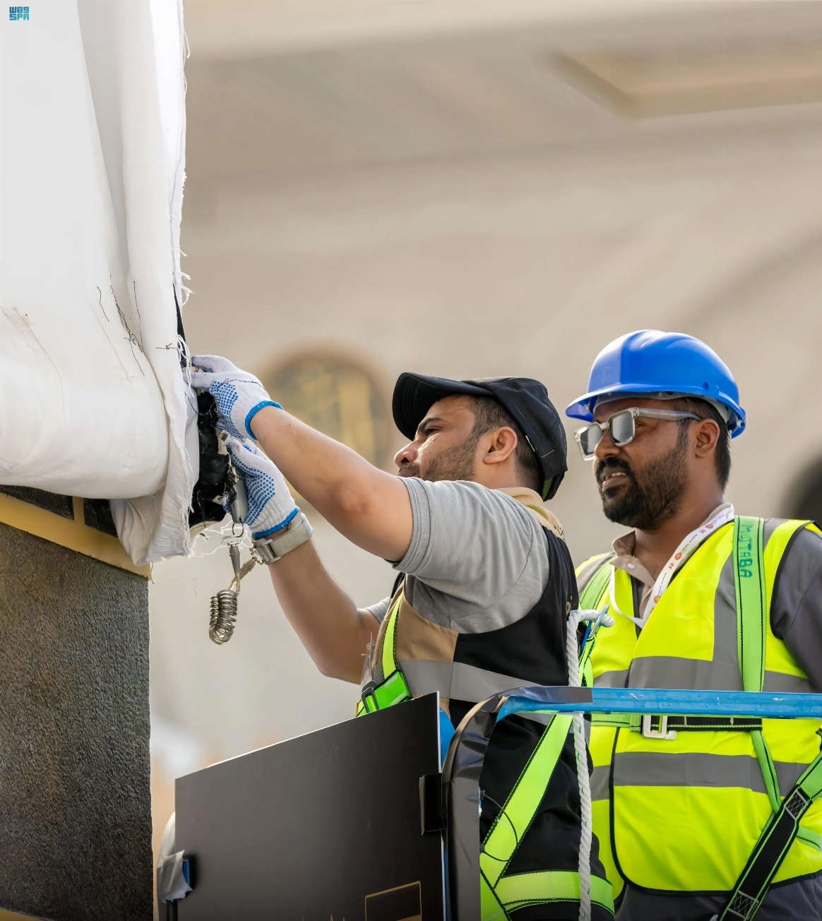 من جانبها، تواصل الهيئة العامة للعناية بشؤون المسجد الحرام والمسجد النبوي تنفيذ أعمال الصيانة باستخدام أحدث التقنيات، بما يضمن الحفاظ على الكعبة المشرفة وفق أعلى معايير الجودة والدقة.