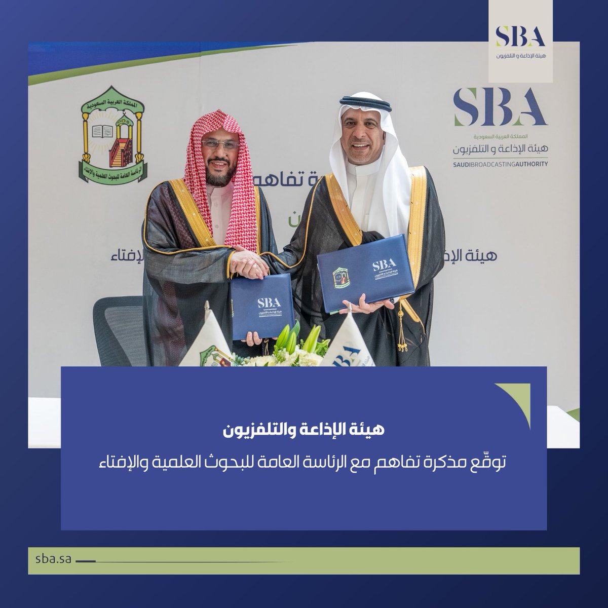 وقّعت هيئة الإذاعة والتلفزيون السعودية مذكرة تفاهم مع الرئاسة العامة للبحوث العلمية والإفتاء، بهدف تعزيز التعاون في تطوير المضامين الإعلامية المرتبطة بالشأن الشرعي والارتقاء بجودتها، بما يسهم في تقديم طرح إعلامي موثوق ومنضبط.